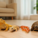 Per rendere l’habitat comodo, puoi aggiungere tappeti in tessuto lavabile e resistenti al rosicchio. Attenzione però alle fibre sintetiche: se ingerite, diventano pericolose. Meglio tessuti naturali robusti. Per la zona lettiera puoi usare pellet di legno pressato (non trattato e privo di resine tossiche), completamente sicuro ed ecologico.