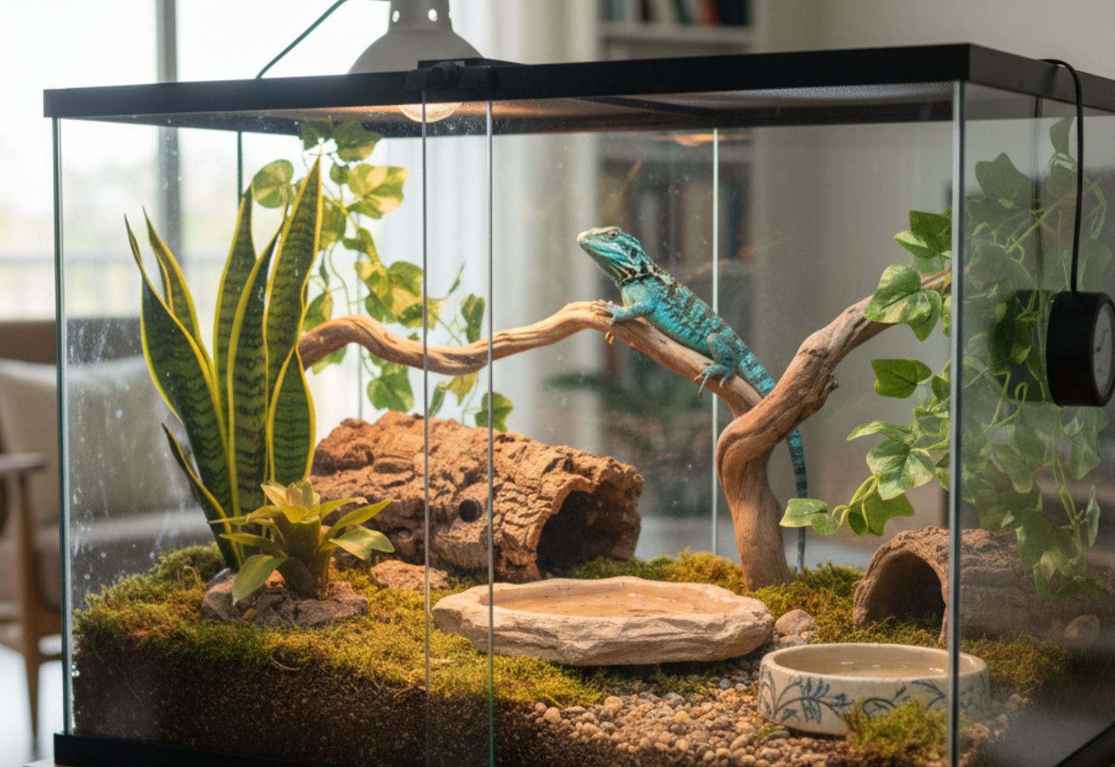 Senza un buon terrario, ogni altro sforzo sarà inutile. Il terrario è letteralmente la “casa” della tua lucertola, e proprio come nella vita reale, una casa piccola e mal costruita può diventare una condanna. La dimensione giusta dipende dalla specie e dalle sue abitudini: ci sono lucertole che amano scalare come dei free climber in miniatura, e altre che invece preferiscono restare sul terreno a poltrire. Prima di comprare, chiediti: la mia lucertola è un’aspirante scalatrice o una pigrona da terra?