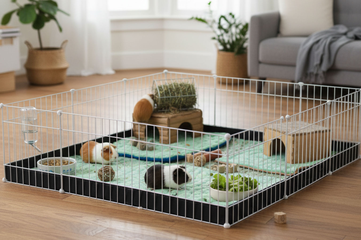 Se non hai stanze libere da dedicare, puoi tranquillamente investire in recinti pieghevoli per animali. Si trovano nei negozi specializzati e ti permettono di costruire letteralmente una “palestra” tutta per loro in pochi minuti. Una soluzione ideale se vivi in appartamento e non vuoi trasformare la tua camera da letto in un campo minato di pellet e segatura.