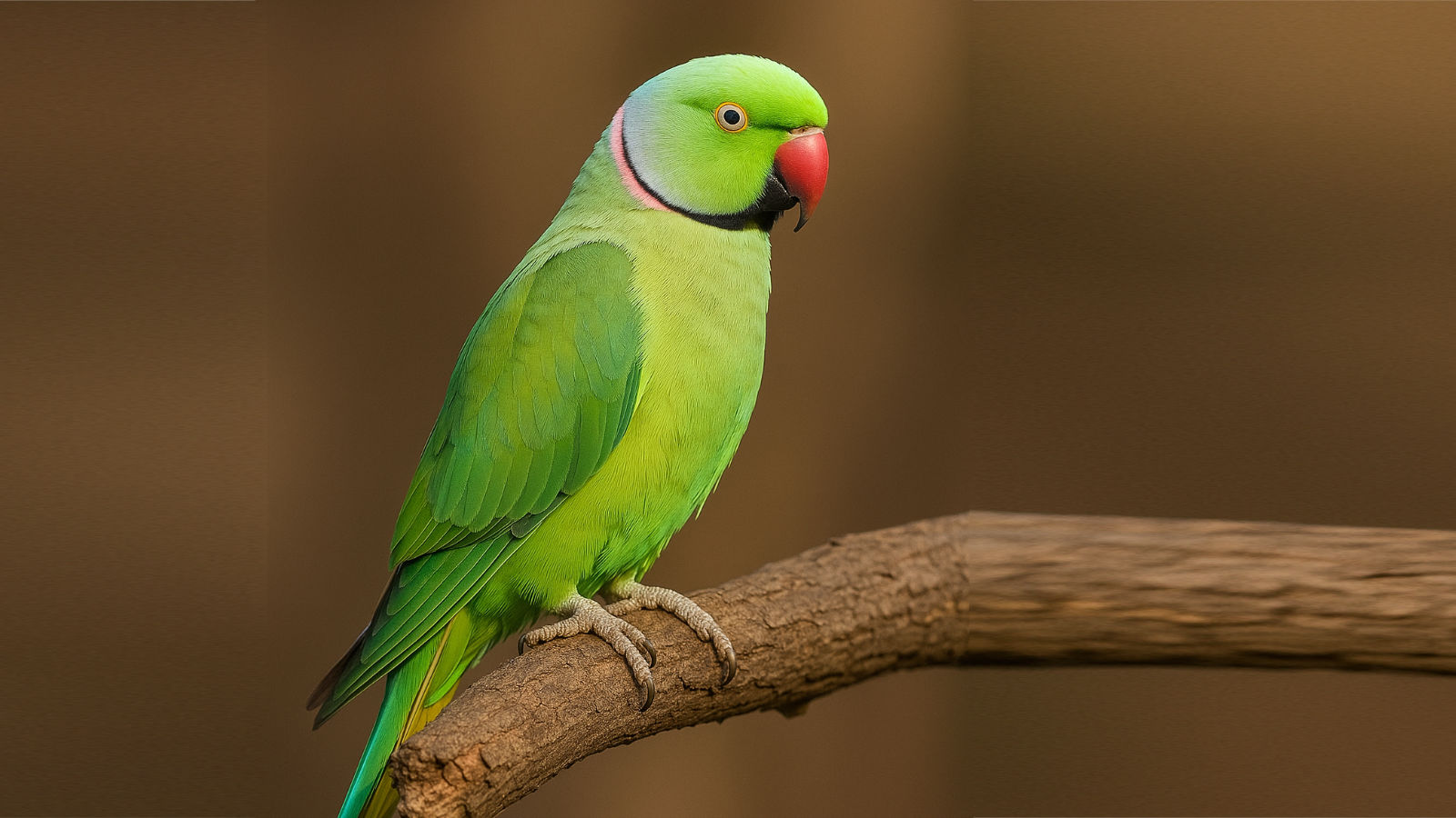 Fisicamente si riconoscono subito per il loro piumaggio verde brillante, il becco rosso acceso e, negli esemplari maschi adulti, un elegante collare nero-rosa che da il nome alla specie. Non sono uccelli minuscoli: la loro lunghezza media arriva ai 40 cm, coda compresa. Perciò se pensavi di tenere il tuo nuovo amico in una gabbietta per canarini… be’, meglio che lasci perdere l’idea subito.