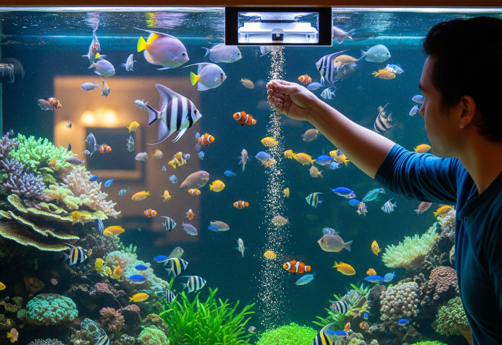 Qui inizia il bello: non tutti i pesci hanno la stessa routine alimentare. Alcuni sono veri divoratori seriali, altri preferiscono spizzicare tutto il giorno come studenti universitari davanti al frigo a notte fonda. La regola universale “due pasti al giorno” non è sempre valida, e capire il comportamento della specie che ospiti farà la differenza.